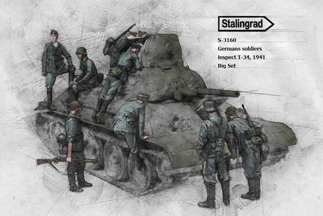 German soldiers inspecting T-34 Russian Tank complete set
