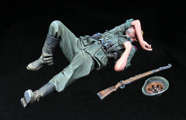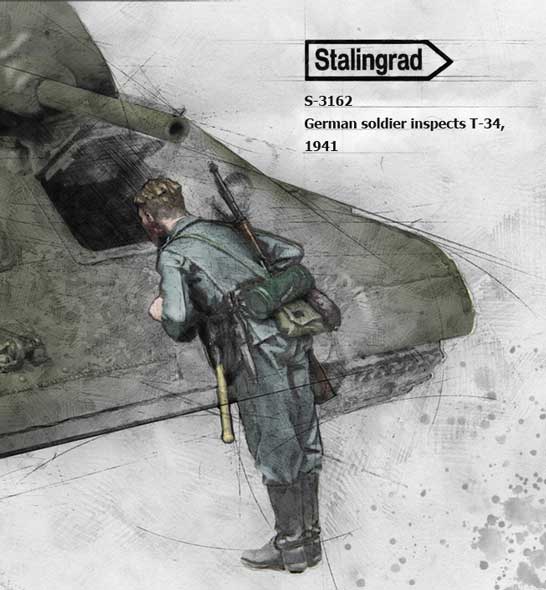 German soldier inspecting T-34 1/35 scale resin kit |