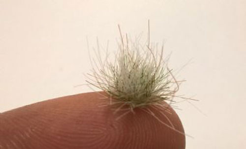 from the balls of grass & attach to figure base with white glue or