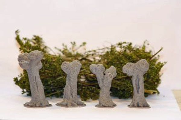 different resin trunks and a bag of green foliage (Joefix item #