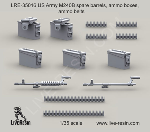 LRE35016 M240B spare barrels, ammo boxes, ammo belts LRE35089 ammo