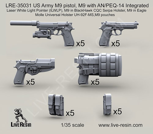 pistol, M9 with AN/PEQ-14 Integrated Laser White Light Pointer (ILWLP),