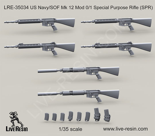 Mk 12 Mod 0/1 Special Purpose Rifle (SPR) 1/35 scale resin kit Compatible accessories: