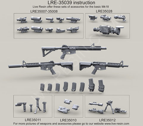 US Navy Seals Weapon Mk.18 Rifle (CQBR) 1/35 scale resin kit Compatible accessories: