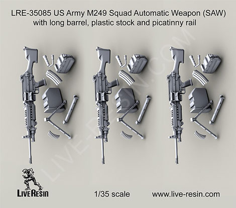 Automatic Weapon (SAW) with long barrel, plastic stock and plastic hand
