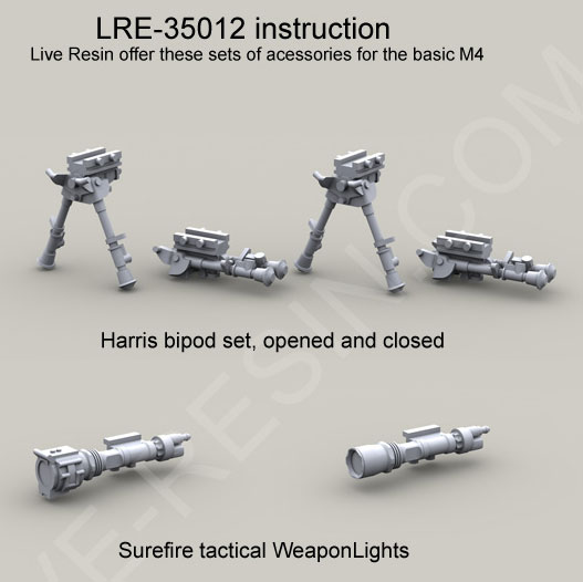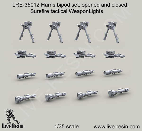 Harris bipod set, opened and folded, Surefire tactical WeaponLights 1/35 scale resin kit