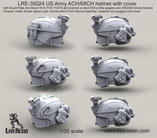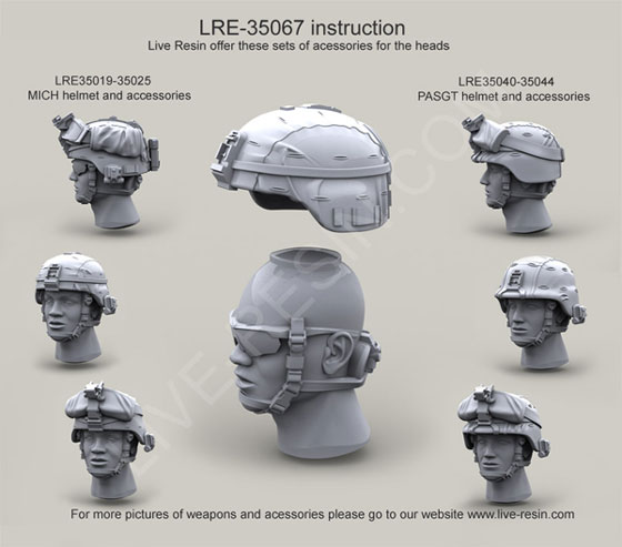 PASGT helmet with cover with Mount Plate NVG PVS 7/14/15 1/35 scale resin kit (heads LRE35067 & LRE35068 not
