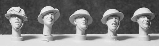 Five pc. Heads, British WWII with Helmets. 54mm scale resin