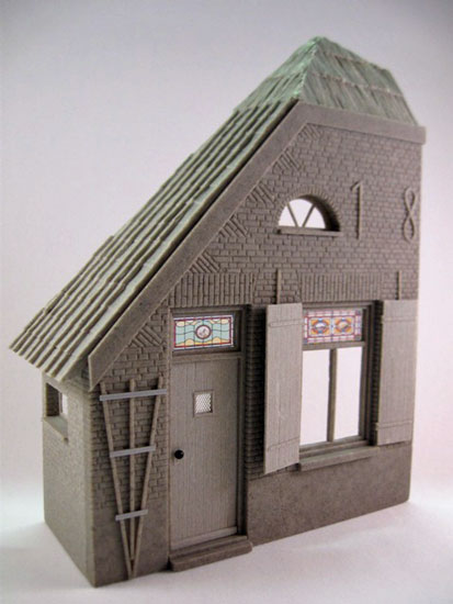 features detailed brickwork on both sides, laser cut windows, window