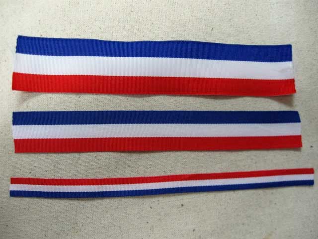 is a set of good quality Dutch Flag ribbon in 3 sizes. They can be cut to