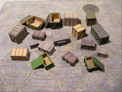 a large set of many different crates and boxes. The set contains 15